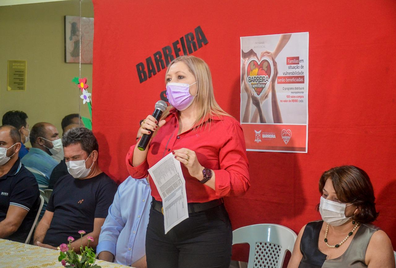 "Achei melhor optar pelo salário de professora, porque assim liberava o salário como prefeita", explica. Com isso, decidiu enviar projeto de lei para a Câmara Municipal de Barreira redirecionando o salário como chefe de Executivo - de R$ 10 mil - para a criação do programa "Barreira Sem Fome".